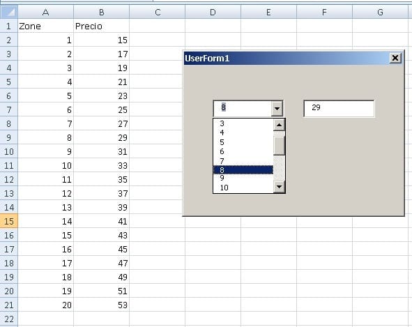 Tengo una macro pero en un textbox Zone solo escribo del 1 al 20 y en otro textbox Precio quiero que me de el precio de el numero que le pongo en el textbox Zone. Eje; en la tabla que tengo es Zone que va de el 1 al 20, y en la otra tabla el precio que le corresponde a esa Zone.