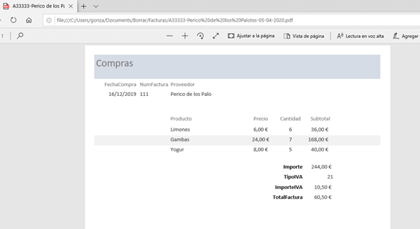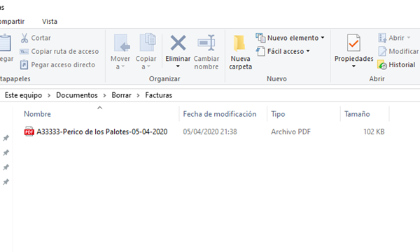 Exportar el informe al completo en un PDF, y este a su vez pasarlo por la impresora (papel) no me resulta problema, pero últimamente muchos de mis clientes me solicitan la factura por email y tengo que cortar manualmente el PDF y esto me supone mucho tiempo, me gustaría poder exportar a pdf cada factura por separado y que el archivo resultante tenga al menos el código del cliente, su nombre de cliente y fecha de creación, para poder clarificarlo, por ejemplo : "A00032 - Repuesto NEO - 25.03.2020.pdf"
