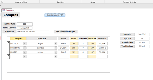FECHA FACTURA --> tipo de dato; fecha/hora