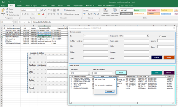 End IfEn la codificación del IF seleccionan DNI en el combobox2 me logra filtrar cuando coloco el número exacto y luego en ELSE me funciona con cadenas de texto(no con números), pero quisiera que coloque un número y me logre el resultado de los que contengan ese número.
