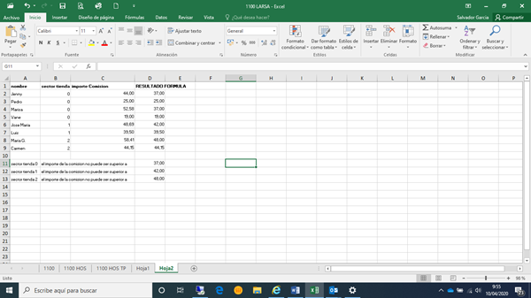 El problema es cuando quiero hacer un segundo Excel en que traspaso los datos de nombre del trabajador, sector de tienda y importe de la comisión, pero este importe de comisión no puede superar el tope por sector.