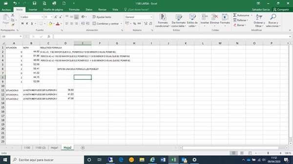 Veo que tienes Situación y Nota, pusiste 8 ejemplos, en la segunda imagen pon los 8 resultados que esperas, y me explicas 3 de ellos.
