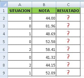 Según el valor de la nota que puede ser 0, 1 o 2 tiene que coger el valor de la fila de su nota
