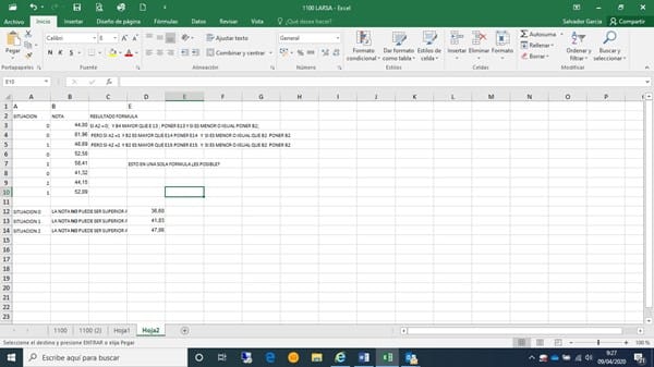 pero si A2 =2 y B2 es mayor que E13 (47'06) poner E13 (47'06) y si B”(44) es menor o igual que B2 poner B2 (44)