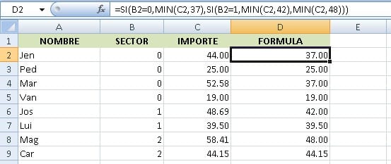 Por lo tanto, he de buscar alguna fórmula en que me diga que según el sector que esté ubicado al empleado le corresponde el porcentaje calculado o que no supere el máximo establecido