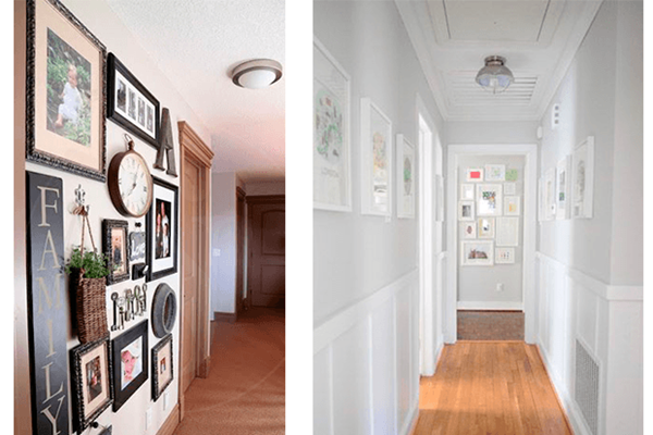 Acabo de pintar el pasillo en color arena muy claro ya que tengo la alfombra tirando a teja. Tengo una, entrada de unos 5 metros cuadrados y luego el pasillo es de unos 4 metros por 90cmde ancho. Las puertas son marrones. Quisiera poner fotos de mis hijos, de momentos. Que vendría mejor, marcos cuadrados dorados y que sean con fotos pequeña y poner línea de dos.? O marcos rectangulares o un poco de todo. Y el color de las fotos, ¿en color o en blanco y negro?