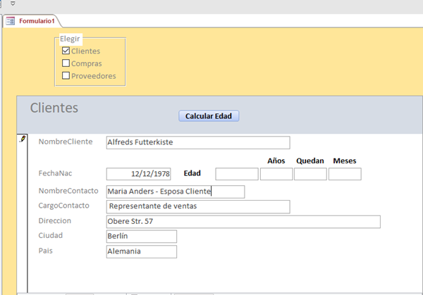 Private Sub Detalle_Click() Clientes.Visible = False Tabla2.Visible = False DetallePedidos.Visible = False End Sub Private Sub Marco0_AfterUpdate() If Marco0 = 1 Then Clientes.Visible = True Tabla2.Visible = False DetallePedidos.Visible = False ElseIf Marco0 = 2 Then Tabla2.Visible = False Clientes.Visible = False DetallePedidos.Visible = True Else DetallePedidos.Visible = False Clientes.Visible = False Tabla2.Visible = True End If End Sub
