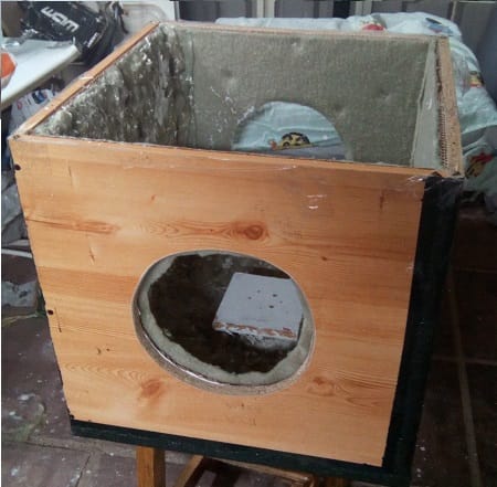 Se me ha presentado una duda referente a un cajón casero insonorizado para un extractor de aire que está casi terminado. Emite unos 70 - 75 Db sin cajón. El cajón (cuadrado 50 cm x 50) lo he fabricado con madera, cartón pegado en la superficie interna, luego tela de manta en el cartón pegado y por último estoy poniendo fibra de roca (creo que fibra de roca, que alguien me confirme por favor) pegada con yeso/pasta de fijación. Pero en cuestión temo que la fibra externa con la vibración se vaya cayendo. La pregunta es la siguiente... ¿se podría poner una capa al final sobre está fibra con yeso/pasta de fijación para que no se caiga y quede compacta? ¿Sería peor o mejor para la insonorización? (O sea al final de todas las capas... Sobre la fibra de roca (fibra de roca supuéstamente)