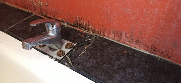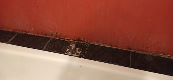 La silicona que unía la pared con los azulejos de la bañera se levantó, por lo que el agua se filtró y ha ido hundiendo todos los azulejos alrededor.