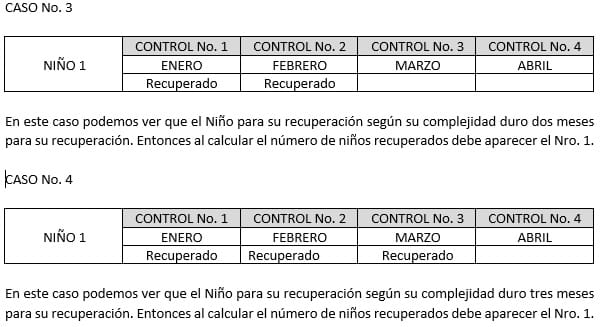 Pero hay que tener en cuenta que un niño puede cambiar de estado, es decir: que si un niño durante sus cuatro citas de control las cuales son una cada mes que serían 4 citas puede presentar: