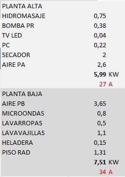 Y luego cómo lo replanteé según los siguientes consumos, que entiendo no todos funcionarían a la vez pero igualmente creo que entran en la consideración: