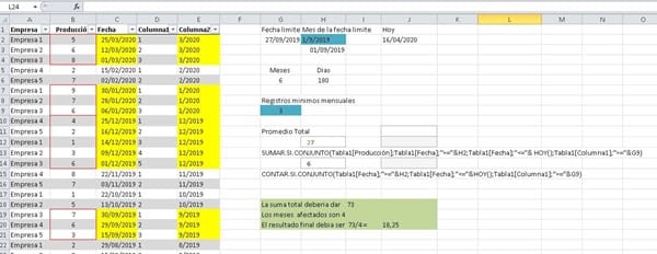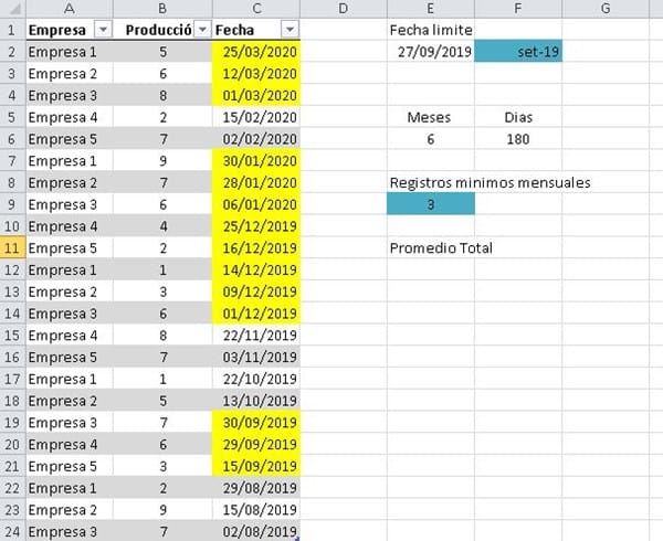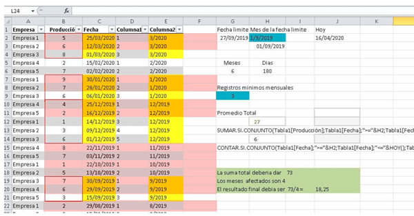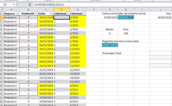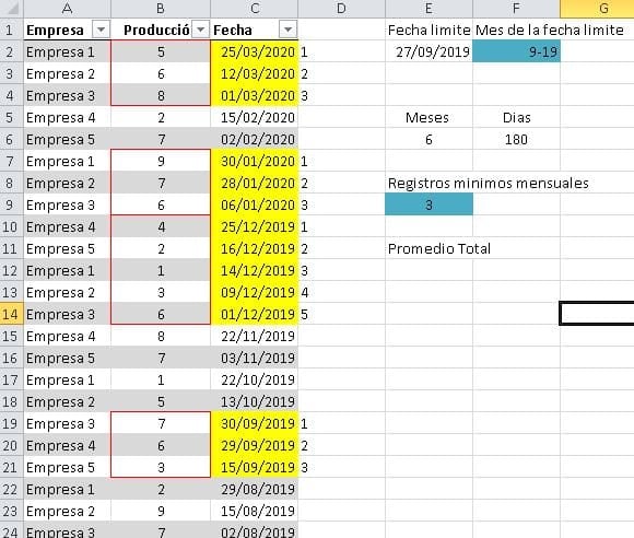 En la foto anterior en azul estarían los criterios. La fecha máxima y el mínimo de registros de ese mes que debe tener.