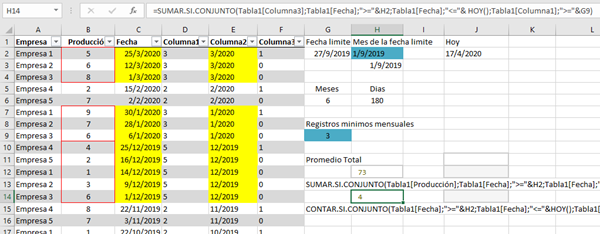 - La suma de los meses que cumplan los criterios de las celdas azules