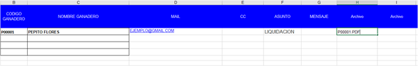 Entonces la macro toma el destinatario "P00001" que está en la columna B (en la columna B del archivo de correos masivos están los dstinatarios) y le agrega la extensión .pdf, entonces busca el archivo "P00001.pdf" en la misma carpeta donde tienes el archivo con la macro.
