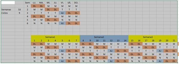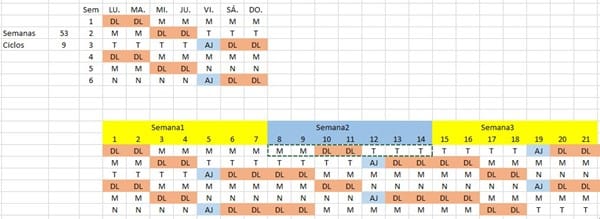 Me falto añadir que los ciclos, los obtengo de dividir las 53 semanas del año, entre las 6 semanas de rotaciones.