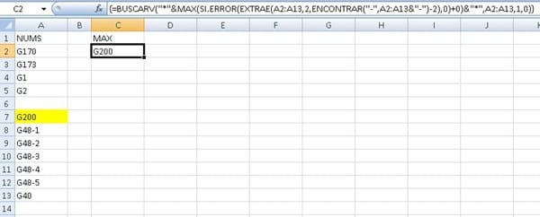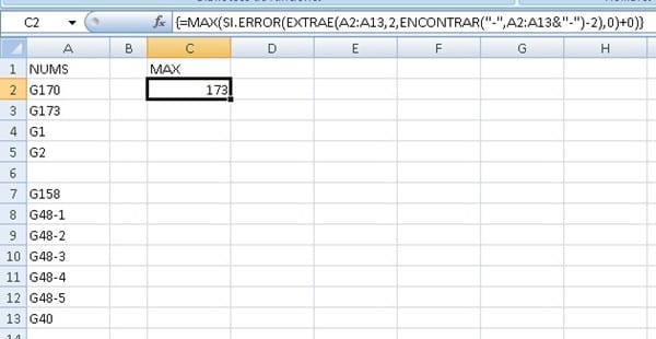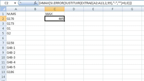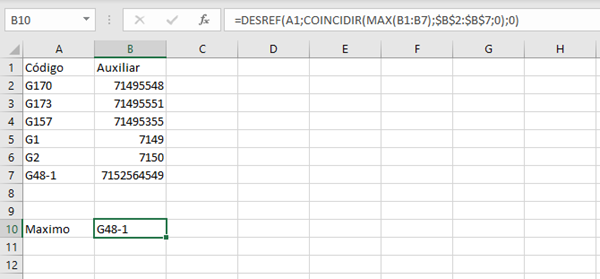 Necesito obtener el valor máximo de una lista de números alfanuméricos y visualizarlo en una celda.