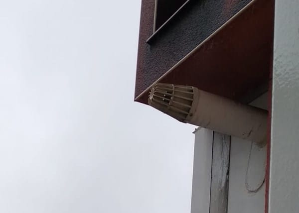 No sé si se aprecia en la foto, pero el tubo sobresale de la repisa de arriba, y entiendo que al estar inclinado y no tapado, es por aquí por donde me entra el agua.