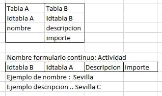 Mi objetivo es que cuando "descripcion" sea como "nombre" (no igual) entonces el valor que corresponda a IdtablaA lo pueda poner en el formulario Actividad. Idtabla A y IdtablaB no tienen ninguna relación.