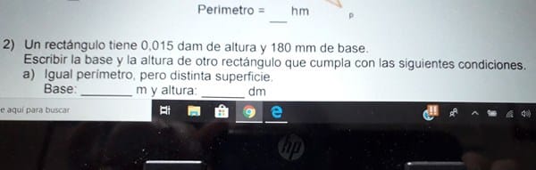 Ejercicios de perímetro ,base y altura de un rectángulo