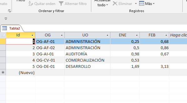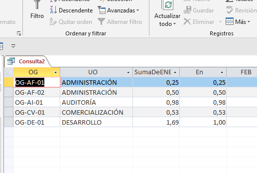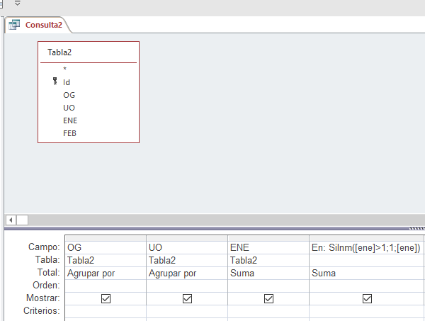 Con campos calculados, con resultados de gestión por gerencia mensual, telemática 0,91; personal 1,69, operaciones 1,97, entre otros, la idea es que al aplicar la fórmula siguiente SiInm([Ene]>1;"1";[Ene]) a la columna denominada Ene debería cambiar el valor de personal y operaciones por 1. Sin embargo la fórmula no me arroja ningún error en access, pero si mantiene los mismos resultados de origen anteriormente señalados. Agradezco el apoyo, a lo mejor puede ser una tontería ...