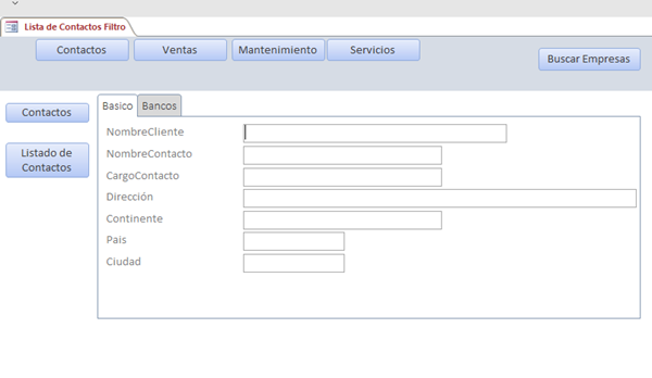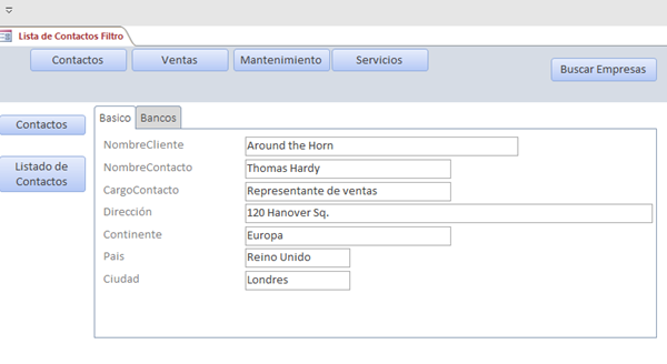 Tengo una base de datos en access 2010 con un menú de navegación. El menu de navegación se llama "Menu principal". Lueho esta el SubformularioDeNavegacion que le he llamado "navegacion" y dentro de este tengo cargado el formulario "contactos".