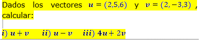 4u + 2v: la metodología no es correcta además que se presta a confusión. Lo correcto es que primero multipliques los vectores por las constantes y luego los sumes