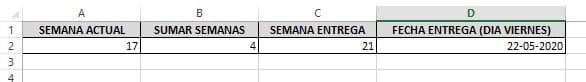 Fecha Entrega) a partir de la semana actual, sumar algunas semanas y traer la fecha del día viernes de esa semana.