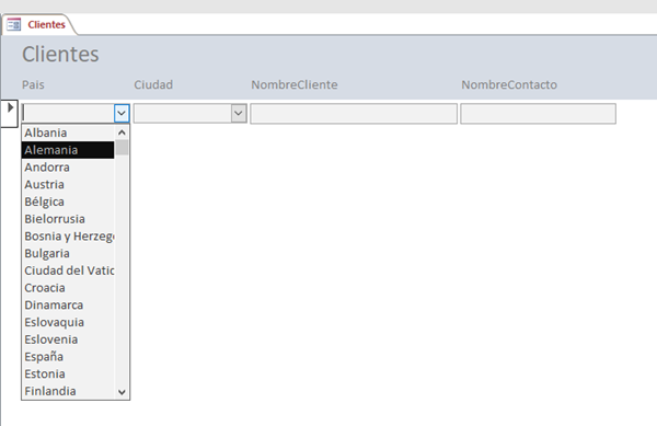 En estos momentos de confinamiento en casa, estoy retocando detalles de mi base de datos, lo último que me ocurre y por lo que escribo, es lo siguiente: en un cuadro combinado dentro de un formulario, se despliega una lista de la cual cuando seleccione uno de ellos y solo ese, se despliegue otra lista donde elegir otro de ellos y al realizarlo el enfoque se dirija a un cuadro de texto donde puedo escribir los datos que desee.