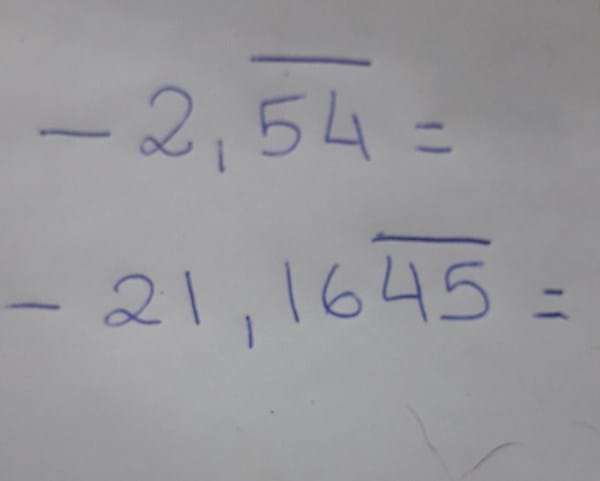 Nunca hice números periódicos negativos me podrían explicar y hacer estos dos ejercicios