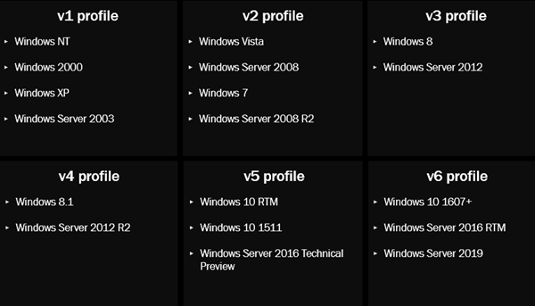 Tengo un WinServer2016 con una serie de usuarios creados. Uno de los usuarios tienen el perfil móvil, de manera, que cuando entra desde un equipo cliente Win7 (unido al dominio), su perfil se almacena en el servidor en una carpeta que tiene por nombre el del seguido de V2. Hasta aquí bien.