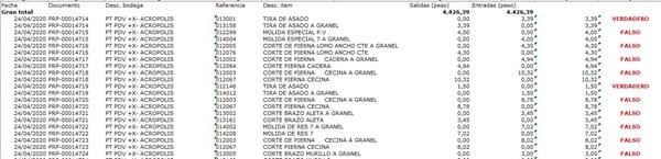 Tengo varios productos en una hoja de excel, todos en la columna F necesito compara si F3 es Chata Premium y F4 es Chata premium a granel, si esta bien que la celda J3 diga verdadero pero si en esta mal que diga falso, ya que esa lista todos los días cambia, y debo comparar todos los días, existen varios productos como cecina, cecina a granel, paletero, paletero a granel, pecho, pecho a granel, lo que se debe hacer es siempre comparar la celda F3 con la celda F4, la celda F5 con la celda F6, así sucesivamente, y encontrar si cumplen las condiciones es decir que cada producto este apareado con su homogéneo, asi me aparece en la columna F.