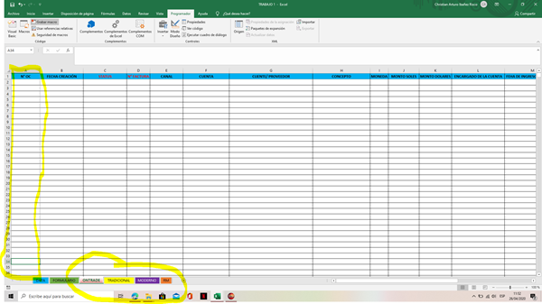 En este formulario el combobox1 se carga con los nombres de las hojas: "ON TRADE". "tradicional"."MODERNO","RM"