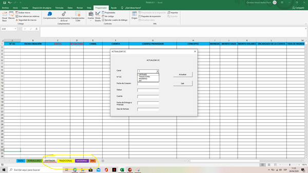 En este formulario el combobox1 se carga con los nombres de las hojas: "ON TRADE". "tradicional"."MODERNO","RM"