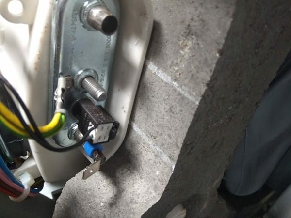 Cada vez que la enchufo salta la luz. He visto una pieza que pudiera ser la causante. Parece un sensor de temperatura. Pero no lo puedo asegurar. Sin esa pieza en su lugar, no hay problema con los cortes de luz, pero el tambor no gira. Se encuentra ubicada cerca del bloque de ormigón, el cable es gris y está justo al lado del cable de toma a tierra. Existe alguna forma de poner una fotografía aquí, ¿por si me pudieran echar una mano o darme alguna indicación?