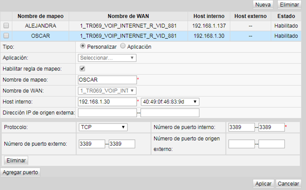 Disculpen estoy tratando de configurar 3 maquinas de escritorio remoto para que personas puedan conectarse de manera externa, ya hice la configuración en una maquina, también ya configure el router huawei en port forwarding agregando una maquina con el puerto interno y externo 3389-3389, y ya pude conectarme, pero si quiero agregar otra maquina me dice que ya estoy usando ese puerto, ¿mi pregunta es si deseo agregar más maquinas que puertos debo usar en el router? ¿Y también debo agregar ese puerto en las maquinas que se conectaran?