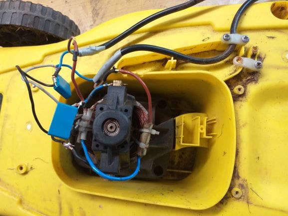 Tengo un cortacésped eléctrico y no me funciona, al motor llegan dos cables de con fase y neutro cada uno, el caso es que el motor no gira, las escobillas están bien le cambie dos condensadores pequeños que tenían en habitáculo donde va el motor pero sigue igual, intente meter corriente directamente pero nada. ¿Qué le puede pasar?