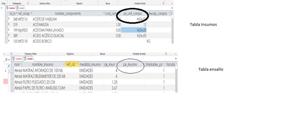 Si alguien me pudiera ayudar lo agradecería mucho. Tengo dos tablas una llamada insumos y otra tabla llamada ensayo, la tabal ensayo toma los valores mediante un cuadro combinado de la tabla insumos, el problema es que cuando modifico el precio unitario en la tabla insumos, no se como actualizarlo en la tabla ensayo, lo he intentado con Refresc pero no me hace nada, lo he intentado también mediante una consulta de actualización pero tampoco