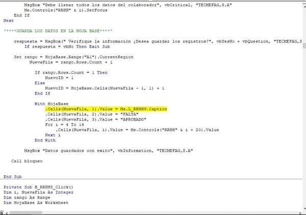 Fíjate estimado esta es otra prueba que hice en una copia que tengo del archivo solo que esta vez el registro es de otro botón y me esta generando el mismo error... EN ESTE CASO NO HAY UNA SENTENCIA FOR NEXT, SIMPLEMENTE ASIGNO VALORES DE LOS CONTROLES A LAS CELDAS. Eso me esta sucediendo en todas lac copias