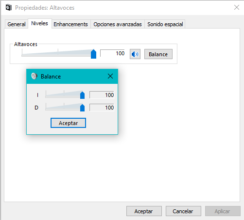 Lo más raro de todo es que si los conecto al móbil con el bluetooth suenan los dos altavoces perfectos, así que parece que el problema está en la configuración del ordenador (windows 10).