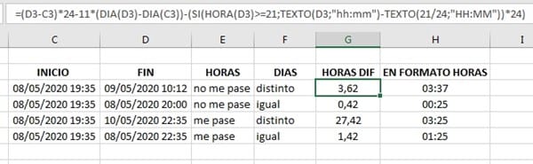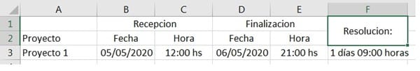 Necesito una fórmula en excel que me pueda medir los tiempos de cada operación que reciba hasta que las responda... Considerando mi horario laboral como día completo.