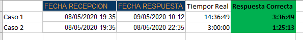 Tengo un dilema, necesito realizar una planilla que mida el tiempo de respuesta de cada solicitud que recibo en mi trabajo ( reviso de operaciones )