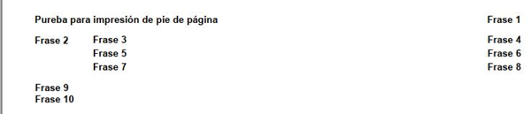 Aparición de símbolos y desajuste en frases en pie de página cuando se imprime PDF desde informe.