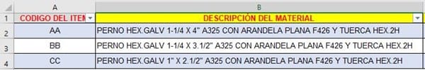 Buenas tardes, me podrían ayudar con el siguiente cuadro, necesito una macro para devolver el contenido de las cedas de la columna "E" según el código de la columna "B" cuando lo digite, los datos de encuentran en otra hoja que se llama datos.