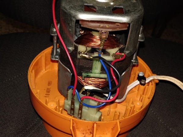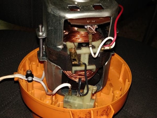 Revisa el cable blanco quemado, en la foto de arriba, revisa los carbones o escobillas.