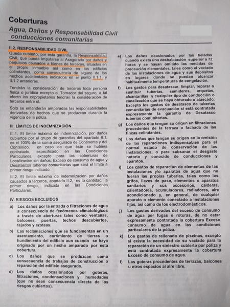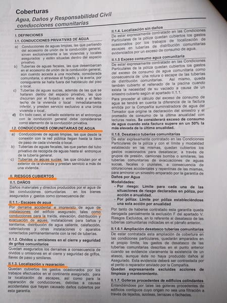 Vista la póliza de nuevo y al tratarse del pesebrón: ¿No se consideraría una conducción comunitaria y debería cubrirnos la cobertura de responsabilidad civil por agua, la cantidad que exceda de 500 euros?