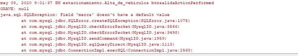 Estoy creando un proyecto de estacionamiento de coches lo estoy haciendo en java y Mysql, en fecha/hora de entrada del coche lo inserto sin problemas, pero el detalle es cuando inserto fecha/hora de salida ya que desde el botón de salida realizo el evento pero me sale error de excepción.