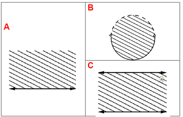 El conjunto A es el semiplano superior, el conjunto B es un disco con la mitad de su frontera, y el conjunto C es una banda infinita, incluye su frontera.
