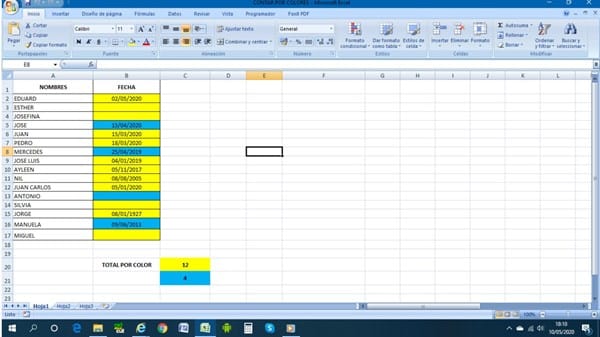 Hace muy poco que me he iniciado en VBA EXCEL y necesito contar celdas según su color interior, hasta hora tengo esta macro pero solamente funciona si todas sus celdas están coloreadas y necesito que cuente celdas con o sin datos pero que esten coloreadas :