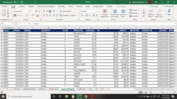 Private Sub TextBox1_Change() Application.ScreenUpdating = False TextBox1.Value = UCase(TextBox1) 'cambiar # de textbox Set b = Sheets("BASE_ENTRADA") uf = b.Range("A" & Rows.Count).End(xlUp).Row 'LA COLUMNA A ES EL FOLIO Me.ListBox1.RowSource = "" With ListBox1 .ColumnCount = 17 ' NUMERO DE COLUMNAS .List = Range("B1:S1").Value ' ENCABEZADOS DEL RANGO .ColumnWidths = "50 pt;90 pt;110 pt;70 pt;70 pt;100 pt;70 pt;70 pt;70 pt;70 pt;70 pt;90 pt;100 pt;1 pt;110 pt;70 pt;70 pt;60 pt" 'asignando ancho de columnas .Clear For i = 2 To b.Range("B1").End(xlDown).Row 'FILA DE ENCABEZADOS cliente ' strg = b.Cells(i, 1).Value 'cambiar # de columna a buscar EN ESTE CASO EL 1 ES EL NOMBRE If UCase(strg) Like "*" & UCase(TextBox1.Value) & "*" Then 'cambiar # de textbox . AddItem . List(.ListCount - 1, 0) = b. Cells(i, 1) ' FOLIO . List(.ListCount - 1, 1) = b. Cells(i, 2) ' FECHA . List(.ListCount - 1, 2) = b. Cells(i, 3) ' EMISOR . List(.ListCount - 1, 3) = b. Cells(i, 4) ' CONCEPTO1 . List(.ListCount - 1, 4) = b. Cells(i, 5) ' CLAVE . List(.ListCount - 1, 5) = b. Cells(i, 6) ' PRODUCTO . List(.ListCount - 1, 6) = b. Cells(i, 7) ' CANTIDAD .List(.ListCount - 1, 7) = Format(b.Cells(i, 8), "$#,##0.00") ' P/U .List(.ListCount - 1, 8) = Format(b.Cells(i, 9), "$#,##0.00") ' IMPORTE . List(.ListCount - 1, 9) = b. Cells(i, 10) ' RECEPTOR . List(.ListCount - 1, 10) = b. Cells(i, 11) ' CONCEPTO2 . List(.ListCount - 1, 11) = b. Cells(i, 12) ' USUARIO . List(.ListCount - 1, 12) = b. Cells(i, 13) ' TIPO DE MOVIMIENTO . List(.ListCount - 1, 13) = b. Cells(i, 14) ' . List(.ListCount - 1, 14) = b. Cells(i, 15) ' OBSERVACIONES . List(.ListCount - 1, 15) = b. Cells(i, 16) ' FOLIO O REPARTIDOR . List(.ListCount - 1, 16) = b. Cells(i, 17) ' VENDEDOR O ENCARGADO . List(.ListCount - 1, 17) = b. Cells(i, 18) ' UNIDAD DE MEDIDA End If Next i End With If ListBox1.ListCount > 0 Then TextBox2.Value = Empty TextBox3.Value = Empty TextBox4.Value = Empty TextBox5.Value = Empty Else MsgBox "Si No Se Encuentra El FOLIO " & TextBox1.Value & " Puede Ser Por: 1.- No Hay Datos Registrados " & vbCr & " O 2.- La Busqueda Es Incorrecta. Intenta de Nuevo", vbExclamation, "INFORMACIÓN UTIL" ''TextBox1.Value = Empty End If Me.ListBox1.ColumnWidths = "50 pt;90 pt;110 pt;70 pt;70 pt;100 pt;70 pt;70 pt;70 pt;70 pt;70 pt;90 pt;100 pt;1 pt;110 pt;70 pt;70 pt;60 pt" End Sub