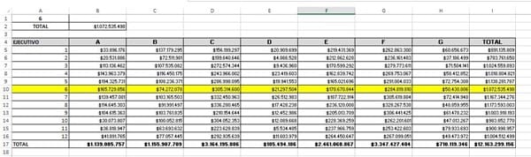 Tengo un cuadro con datos y necesito una fórmula que busque la información a través de una lista desplegable, de modo que si selecciono la búsqueda en A1 (lista desplegable desde A5:A16) y/o A2 (lista desplegable desde B4:I4), en B2 me entregue el valor buscado de la lista contenida en la imagen.